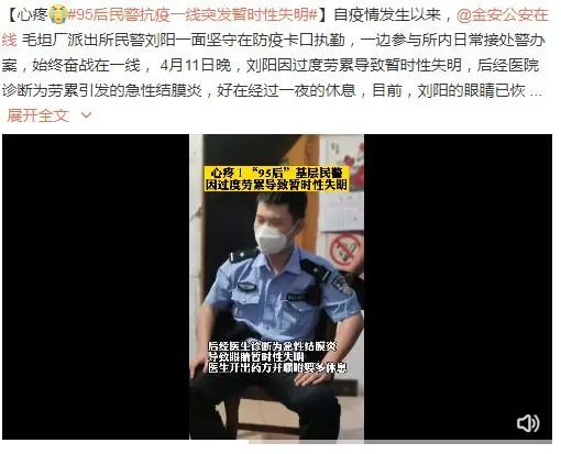 很多時(shí)候我們看到過(guò)度勞累的新聞引發(fā)的大多是身體不適,而這一次卻是因勞引發(fā)了眼疾。近日,一直奔赴在抗疫前線的95后民警劉陽(yáng),一邊堅(jiān)守在防疫卡口執(zhí)勤,一邊參與所內(nèi)日常接處警辦案,因過(guò)度勞累而導(dǎo)致暫時(shí)性失明。...