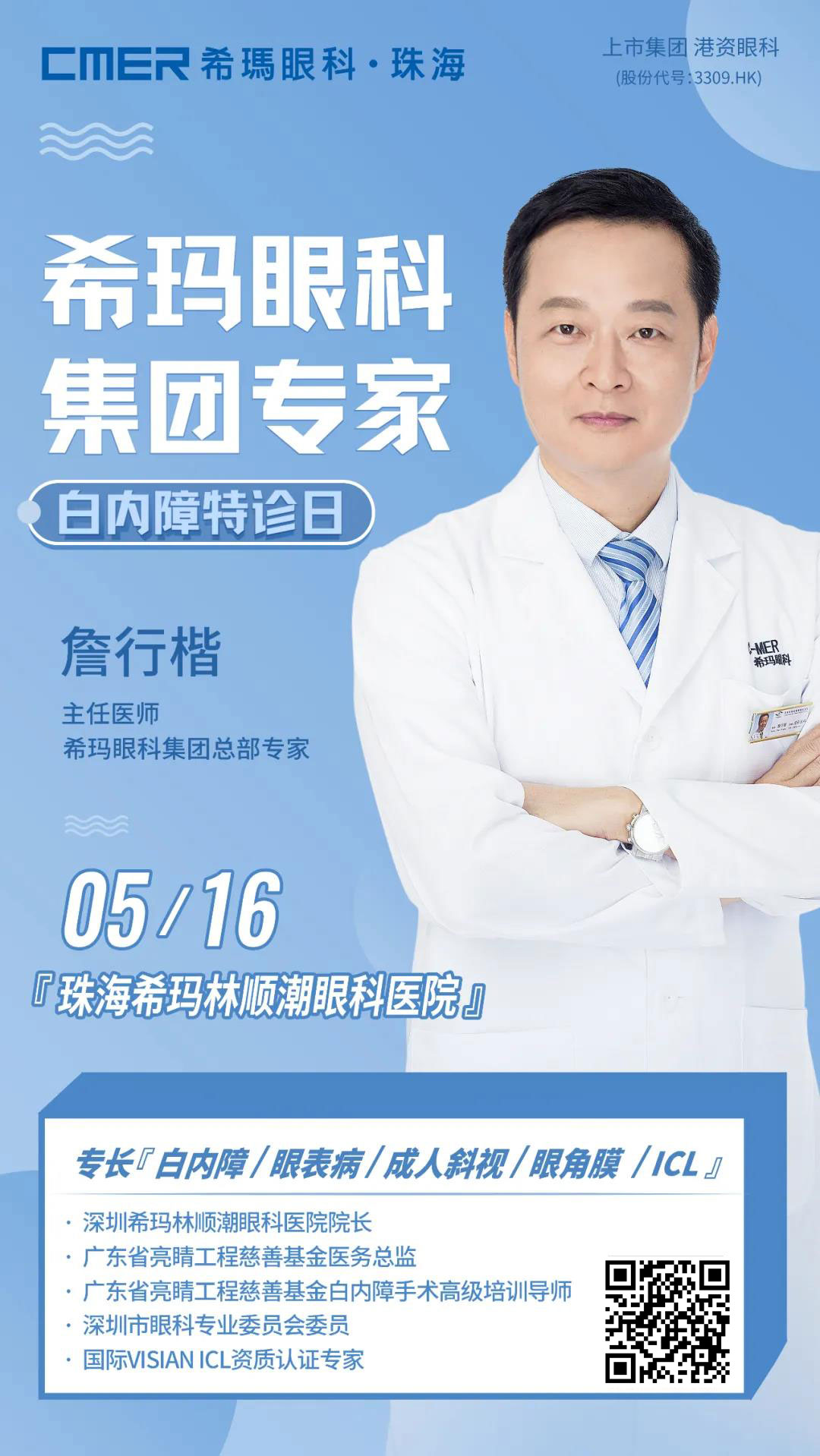 5月16日就是周日(專家在線加班ING)大家可以安排起來了!集團(tuán)總部專家要出診珠海希瑪林順潮眼科醫(yī)院。我可是提前告訴大家了!是不是也是hin貼心~
