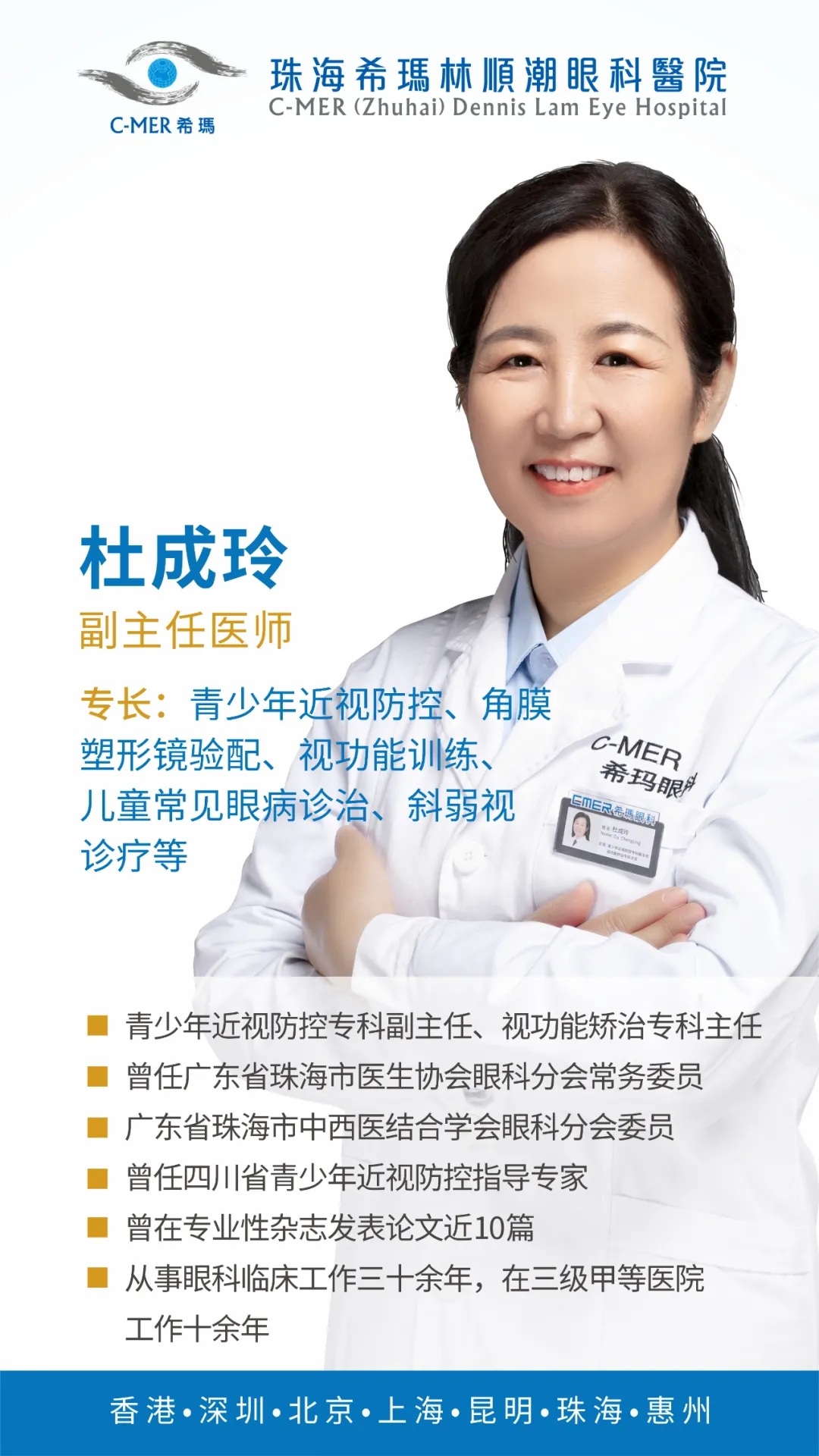 杜成玲主任從事眼科臨床工作30余年。在國家三級甲等醫院工作十多年,在國家三級眼科專科醫院工作多年,曾先后在上海復旦大學附屬眼耳鼻喉科醫院、江蘇省人民醫院眼科進修。對兒童常見病和多發病具有極其豐富的臨床經驗,同時在角膜接觸鏡,角膜塑形鏡,各種功能性眼鏡的驗配、視功能訓練以及斜弱視治療方面具有較高的專業水平。