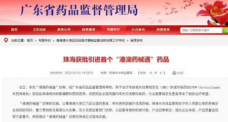 2022年2月,依托"港澳藥械通"政策,經廣東省藥品監督管理局審核,用于治療新生血管性年齡相關性黃斑變性(nAMD)的新藥"布西珠單抗(brolucizumab)獲批在珠海希瑪眼科醫院使用."布西珠單抗":新一代抗VEGF藥物"布西珠單抗"(Brolucizumab)是諾華公司新一代用于治療nAMD的抗VEGF藥物.2019年在美國...