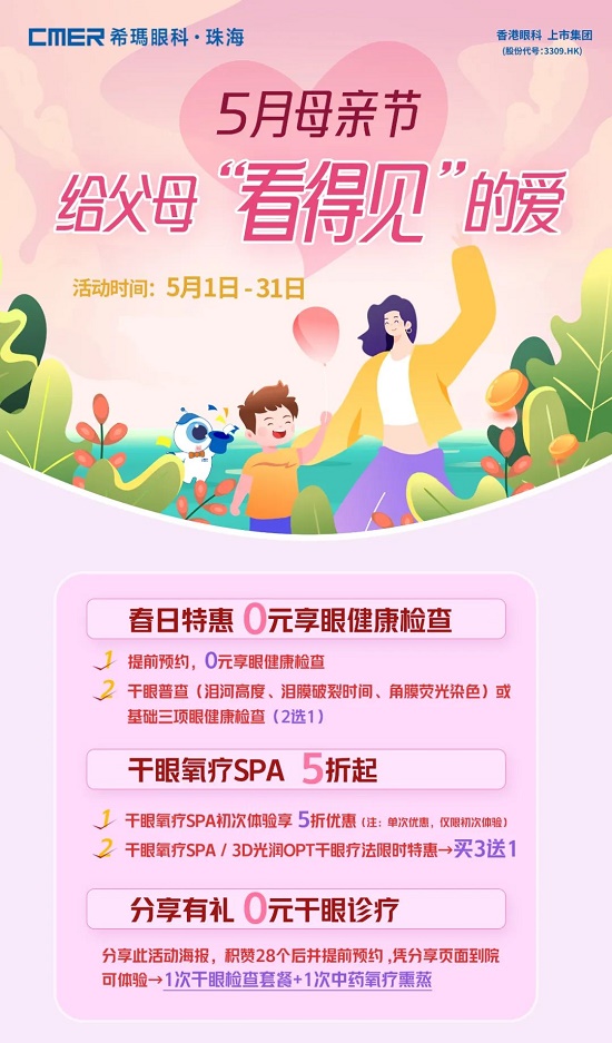 五月母親節(jié),給父母“看得見”的愛,珠海希瑪眼科5月干眼福利!