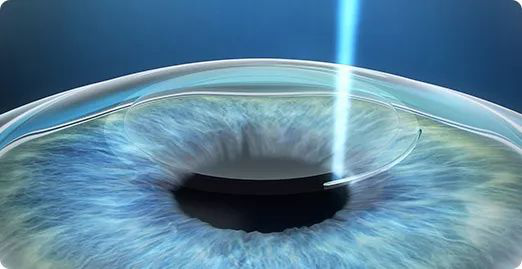 通過兩次啟動飛秒激光掃描制作微鏡狀的角膜組織膜片,并在角膜上方做一個2-4mm的淺層小切口,將飛秒激光制作的擬矯度數的小薄片角膜組織取出,從而達到改變角膜屈光力矯正視力的目的。