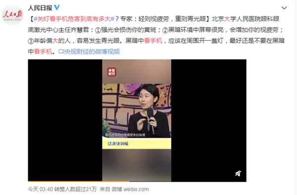 據北京大學人民醫院眼科眼底激光中心齊主任講述,關燈看手機有三大危害,輕則視疲勞,重則青光眼。