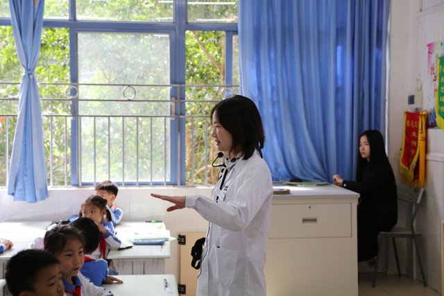 ▲希瑪眼科醫(yī)生給學(xué)生進(jìn)行愛眼護(hù)眼科普宣講