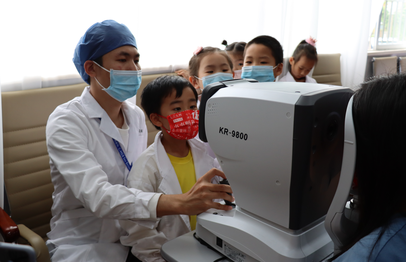 職業體驗中讓孩子們感受保護眼睛的重要性,深度強化了寶貝和家長的愛眼護眼意識。后,為小朋友們進行了眼部檢查,對于視力不良的小朋友,給出了日常護眼建議。