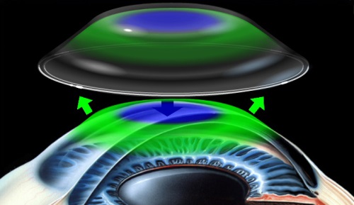 角膜塑形鏡其實相當于一種特殊設計的隱形眼鏡鏡片,配戴上角膜塑形鏡后,鏡片會輕輕接觸角膜,配合眼皮的眨眼動作而慢慢地改變角膜形狀,使角膜中央部份受壓而變得平坦,而令外界進入眼睛光線重新聚焦到視網膜上,從而達到降低近視度數或散光的效果。它通過鏡片塑形力和淚液張力,改變角膜前表面的弧度,夜間佩戴8小時,白天可暫時恢復清晰視力。